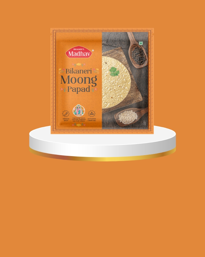 Our Delicious Range AwaitsFrom spicy Namkeen to crunchy Papad and mouth-watering Sweets, explore the authentic taste of Bikaner with Madhav’s flavorful collection.