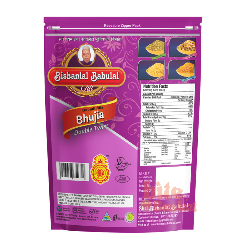 Boondi Mix Bhujia – Experience the perfect blend of crispy Boondi and spicy Bikaneri Bhujia from Bishanlal Babulal. This flavorful mix combines the crunch of boondi with the classic Bikaneri spice, making it a must-have snack for every occasion. Ideal for tea time or as a tasty topping for chaats.